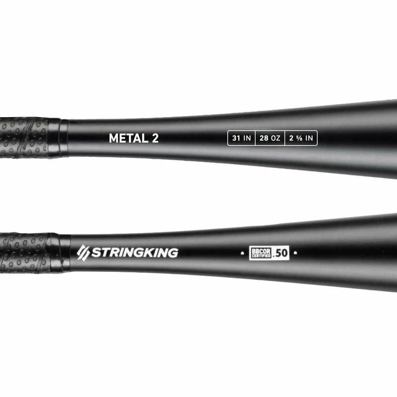 StringKing took the same premium alloy used in their best-selling Metal Pro BBCOR and overhauled the manufacturing process to create a better baseball bat in every way. Design, materials, and manufacturing working together to deliver elite performance. The Metal 2 BBCOR features an extended barrel and upgraded taper compared to the first generation Metal. The longer barrel gives the Metal 2 more surface area to make contact with the baseball, and a better chance for you to send one to Pluto.